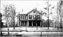 From his house on North Market Street in Canton, McKinley ran his campaign, with telephone and telegraph at his disposal. Hanna was busy meeting with executives to extract funds, and delegated much of the day-to-day policymaking to others, most prominently Dawes, who was a member of the campaign executive committee and was responsible for distributing much of the money that Hanna raised. Payne was nominally in charge of the Chicago office, but Dawes, a member of the McKinley inner circle, had more influence. Pamphlets were sent from Chicago in carload lots across the country. The campaign spent almost $500,000 on printing alone, which Stanley Jones, in his account of the 1896 campaign, estimated paid for hundreds of millions of pamphlets.[67] The campaign paid for hundreds of speakers to stump on McKinley's behalf.[68] Efforts were made to keep expenses down; Dawes insisted on competitive bidding,[69] and most of his top-level hires were business associates, not political operatives. Others prominent in the Chicago office included Charles Dick, the secretary of the organization and later a senator.[70]
