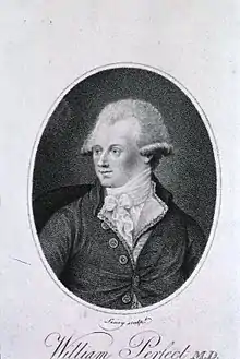 He was born in Oxford, England,[1] the son of William Perfect (1712–1757), a clergyman of Huguenot extraction who was vicar of East Malling, Kent, from 1745.[2] In 1749, Perfect apprenticed under William Everred, a London surgeon,[3] for seven years and attended lectures by Colin MacKenzie, a Scottish obstetrician.[4] He opened his medical and obstetric practice in High Street, West Malling, Kent in 1756,[5] and he obtained his Medicinae Doctor (M.D.) from St Andrews University in 1783.[6] He published three editions of his book, Cases in Midwifery, 1781–1787, and each edition contained case reports describing in detail the conditions of the patients and the treatments which were administered. He is a distant relative of the Stratford and Taylor families.