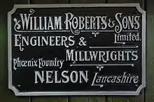 William Roberts and Company (later William Roberts and Sons) of Phoenix Foundry in Nelson, Lancashire, England, produced many of the steam engines that powered cotton weaving and spinning mills of Pendle and neighbouring districts.[1] Industrial historian Mike Rothwell has called Phoenix foundry “Nelson’s most significant engineering site”.[2]