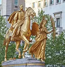William Tecumseh Sherman, also known as the Sherman Memorial or Sherman Monument,[1][2] is a sculpture group honoring William Tecumseh Sherman, created by Augustus Saint-Gaudens and located at Grand Army Plaza in Manhattan, New York. Cast in 1902 and dedicated on May 30, 1903, the gilded-bronze monument consists of an equestrian statue of Sherman and an accompanying statue, Victory, an allegorical female figure of the Greek goddess Nike.[3] The statues are set on a Stony Creek granite pedestal designed by the architect Charles Follen McKim.[4]