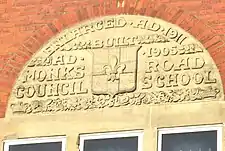 - Monk's Road Primary School, Lincoln. 1903/4 and later extended. A similar datestone to the Spring Hill School is above the gable window on this school.[40]