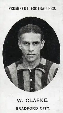 ![]() Clarke featured in the Taddy 'Prominent Footballers' cigarette card series in 1907 while playing for Bradford City | |||