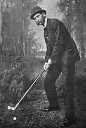 Willie Dunn was born in Musselburgh, Scotland, on 19 August 1821.[2] Along with his twin brother, Jamie, he played in many challenge matches between 1840–60. Dunn apprenticed under the Gourlay family and was keeper of the greens at Blackheath until 1864 when he returned to the Thistle Golf Club at Leith Links.[3]