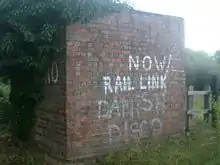 The wooden station buildings were derelict by 1971 and had been cleared away by 1975, leaving the remains of the original brick-built platform.[12] The trackbed through the station has been preserved as part of National Cycle Route 51.