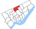 ![]() Willowdale in relation to the other Toronto ridings (2013 boundaries) | |||