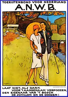Sluiter collaborated with the Royal Dutch Touring Club and created a number of posters for them. The 1926 poster Laat niet als dank... advertising garbage collection is considered to be iconic in the Netherlands.[5]