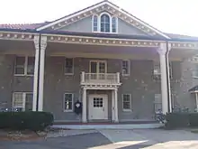 The building that became Wilson Hall was originally part of The Oxford Retreat, a private hospital "for the treatment of mental and nervous diseases, alcoholic, and narcotic inebriety".[1] The main building, which later became Fisher Hall, was torn down in 1979, and was replaced by the Marcum Hotel and Conference Center. Built in 1926, the annex to the hospital was known as "The Pines," and was set apart from the main building to house women who were not only affected mentally, but who also had “nervous disorders, alcoholic, or narcotic addiction”.[1][2] The fireproof building consists of native blue limestone with a red tile roof.[2] After Miami bought the main building of The Oxford Retreat in 1925, The Pines became the main and only building used by the sanatorium.