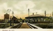 Historic landmarks in Windham include the Searles School and Chapel, Searles Castle, the town center, and the Armstrong Memorial Building.[3] Searles Castle is one of Windham's most prominent landmarks. Edward Francis Searles, an interior decorator and antique collector, built the castle.[5] The architect, Henry Vaughn, modeled the castle's architecture after the style of the Stanton Harcourt Manor in Oxfordshire, England.[5] The building was completed in 1915 at a cost of over $1,250,000. The castle contains over 20 rooms and is available to the public to be rented out for functions and events.[5] In July 1909, Mr. Searles erected a commemorative plaque honoring Governor Dinsmoor "a few rods" from his birthplace on Jenny's Hill,[6] which stands today as a designated historic landmark.[3][7]