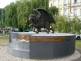 The Winged Lion Memorial (in Czech: Památník Okřídleného lva) was unveiled on 17 June 2014 at Klárov in Prague by the British Member of Parliament, Rt Hon Sir Nicholas Soames MP, grandson of Sir Winston Churchill.[1] It is dedicated to the Czechoslovak airmen who served in the Royal Air Force (RAF) during World War II and who achieved acclaim for their contribution to the Battle of Britain.