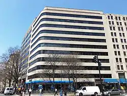 The Wire Building is an historic structure located at 1000 Vermont Ave NW at the intersection of Vermont and K Streets, in Downtown Washington, D.C. It was listed on the District of Columbia Inventory of Historic Sites in 2012 and on the National Register of Historic Places in 2013. The building was designed by architect Alvin L. Aubinoe from the architectural firm of Aubinoe and Edwards and built between 1949–1950.[2] It is a twelve-story structure, rising to a height of 155.6 feet (47 m).[3]
