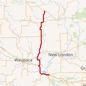 | Waupaca | | 0.00 | 0.00 | Southern terminus | |