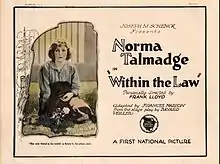 Within the Law is a 1923 American silent drama film directed by Frank Lloyd and starring Norma Talmadge. In 2009 the film was released on DVD along with Talmadge's 1926 film Kiki. Jane Cowl had starred in the original 1912 Broadway production of Bayard Veiller's play of the same name about a young woman who is sent to prison and comes out seeking revenge.[1][2]