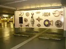 The Castellum was located at the present site of the medieval Petruschurch and surrounding churchyard. During construction work on a new underground parking facility in the city center of Woerden, the remains of numerous old Roman buildings and a Roman cargo ship were found. During field research, a lot became known about the Roman time in Woerden: the location of the castellum, the zone of defense waters with the entrance road and the remains of a Roman cargo ship.[5]