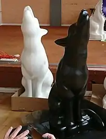 In May 2016, Outside Centre commissioned Boho Creative to design the prototype wolf sculpture, which formed the basis of each exhibit.[8] In March 2017, the first blank wolf sculpture was delivered to Moreton School[9][10] situated in the Bushbury Hill area of the city, with the school pupils tasked with creating a design for the Mayoral Wolf; a wolf sculpture designed with the Mayor of Wolverhampton in mind.[11] A further 29 blank sculptures were delivered to a studio, where local and international artists decorated each wolf sculpture in a unique manner.