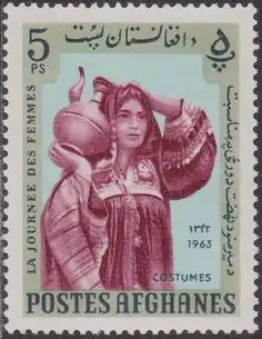 Group of women in Kabul, 2006 Postage stamp of Afghanistan from 1963, depicting an Afghan woman in folk clothing | |