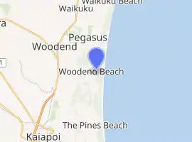 Woodend Beach covers 2.62 km2 (1.01 sq mi).[2] It is part of the wider Pegasus Bay statistical area.[4]