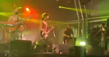 The final evening of the Woodford festival culminates in a spectacular New Year's Day closing ceremony, The Fire Event.[2] Over 20,000 festival goers seated on the grassed Amphitheater hillside witness a spectacle of dance, music, theatricality and fire - with the burning of a large structure heralding the New Year.[2] The Fire Event was developed by Neil Cameron at the former Maleny festival and continued at Woodford, Paul Lawler worked with Cameron and took over as creative director of the event from 2003 - 2011, followed by Joey Ruigrok Van De Werven from 2012 - 2014, and Alex Podger from 2014.[2] The January 2000 Fire Event was featured in the global live TV broadcast heralding the new millennium.