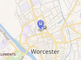Worcester Foregate Street railway station, opened by the Great Western Railway in 1860[1] in the centre of Worcester, England, is the smaller of the two stations serving the city, but more centrally located. The other station, Worcester Shrub Hill, is to the east. A third station, Worcestershire Parkway, is located just outside the city to the south-east.