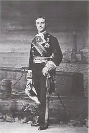In Portugal, Grant visited Lisbon where he and Julia were received by King of Portugal Don Luís I and Queen of Portugal Maria Pia of Savoy.[73] Luís I drew Grant into a private apartment away from people and discussed trade between the United States and Portugal.[74] The King believed the port of Lisbon, after a new Spanish-Portuguese railway was built, would offer the United States produce and manufactures business opportunities. Grant attended the King's royal birthday the following day.[75] Grant refused to take the Grand Cross of the Tower and Sword, an offered gift from the King, saying that although he was an ex-president, he could not accept decorations. Before leaving Portugal Grant also visited with the King's father Don Fernando.[76] On December 12, Grant once again returned to Paris.[56]