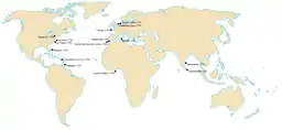 Wars which have been described as "World War Zero" by some historians include the onset of the Late Bronze Age collapse,[19] and the Seven Years' War.[20] According to the historians Richard F. Hamilton and Holger H. Herwig there have been eight world wars, beginning with the Nine Years' War in 1688, followed by the War of the Spanish Succession, the War of the Austrian Succession, the Seven Years' War, the French Revolutionary Wars, the Napoleonic Wars, World War I, and World War II.[21]