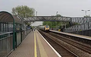 The local services described above are formed using Class 150, 153, 158 and 166 diesel multiple-unit trains.[10][11][12] Services to and from London are formed of Class 800s, which are longer than the station, so passengers in the front carriages have to move to a different carriage to get out.[7][9] Passengers are prevented from getting out onto the tracks by a selective door-opening system.[13]