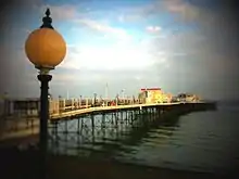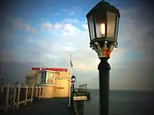 The Pavilion Theatre and Denton Cafe is situated at the northern, land end of the pier; at the middle is the 1935 amusement arcade, which from 1956 - 2006 carried a distinctive 'New Amusements' sign that was featured on the cover of the album To See the Lights (1996) by Britpop band Gene. Since 2006 the sign has changed from 'New Amusements' to 'Pier Amusements'.