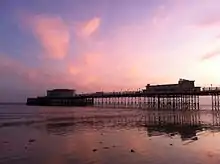 Worthing Pier is a public pleasure pier in Worthing, West Sussex, England. Designed by Sir Robert Rawlinson, it was opened on 12 April 1862 and remains open to the public . The pier originally was a simple promenade deck 960 ft (291m) long and 15 ft (4.6m) wide. In 1888 the pier was upgraded with the width increased to 30 ft (9.2m) and the pier head increased to 105 ft (32m) for a 650-seat pavilion to be built. It is a Grade II listed building structure.