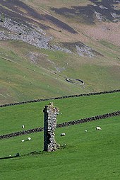 Wrae Tower is a ruined 16th-century stone tower house, located in the upper Tweed Valley in the Scottish Borders area of Scotland, and similarly south of the village of Broughton. The ruin is at grid reference NT115332, 3 km south-west of Drumelzier. Only a fragment of the north-east corner stair tower, around 9m high and 4m across, remains standing. A single jamb represents the north-west ground floor entrance to the tower and crowning the north-east wall is rough corbelling, which supports the remains of a parapet. The tower was probably built by the Tweedies of Drumelzier, who owned the surrounding lands since 1320.
