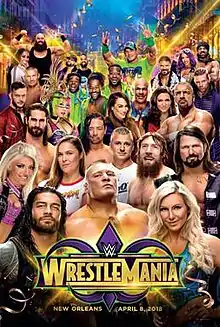 WrestleMania 34 was scheduled to be held on April 8, 2018, at the Mercedes-Benz Superdome in New Orleans, Louisiana. It featured wrestlers from the Raw and SmackDown brands.[9] The event was the second WrestleMania to be held in the state of Louisiana and the second held at the Mercedes-Benz Superdome, which previously hosted WrestleMania XXX in 2014.[9] On October 30, 2017, traveling packages for the event were sold;[10][11] tickets went on sale on November 17, 2017, with individual tickets costing from $35 to $2,000.[10]