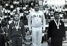 Medal winners of freestyle 97 kg. From right to left, Bishwanath Singh, Mansour Mehdizadeh and Shunichi Kawano