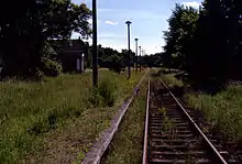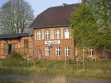 Track on this section was dismantled by 2000 and a paved bicycle path was created in 2005.[10] The old station buildings have been sold to private users and some of them have been well restored. The bridge over the Alte (old) Oder still exists at Wriezen.