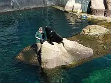 The zoo enjoyed considerable popularity among the inhabitants of Breslau despite a relatively limited variety of animals to be seen. The first elephant was bought in as late as 1873. It was an African elephant named Theodor and was transported from the London Zoo. It instantly became one of the biggest attractions of the zoo in Breslau.[5][7] In later years, the garden also acquired such animals as an anteater, eared seals, and penguins. Among other favourite animals of the zoo were chimpanzee Moritz and gorilla Pussy which arrived in the city in 1897 from Liverpool. A commemorative statue devoted to her can still be found to this day in the Wrocław Zoo.[6]