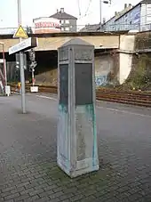 The darkest chapter in the history of the station occurred towards the end of the Nazi period: the deportation of over 1,000 Jewish citizens of Wuppertal via Eastern European ghettos to Nazi extermination camps took place from Steinbeck station. On the platform a labelled obelisk made of stone memorialises the five mass movements of deportees.