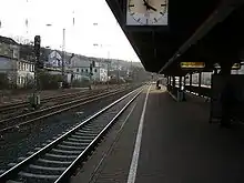 Wuppertal-Steinbeck station is a station on the Düsseldorf–Elberfeld railway in the city of Wuppertal in the German state of North Rhine-Westphalia. The current station building was built in 1913 and it has been heritage-listed since 1991.[6] It replaced an older station building that was built between 1860 and 1870. It is classified by Deutsche Bahn as a category 5 station.[1]