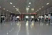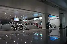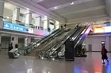 The north station building was opened in 2010, and the part of the transportation hub Wuxi Central Station, operates between 6:00 and 23:00. The departure was located on the third floor, which consists of a ticket room and the entrance. The ticket room has a size of 200 square meters, 13 counters and 10 ticket terminals.[37] The north station and the elevated waiting room was connected by a flyover over the Xingchang Road.[20] The exit was located on the -1 Floor.[38] There is an additional ticket room located on the first floor opened in 2017 to release the lines of the 3rd floor ticket room. The new ticket room has the size of 1,000 square meters, 10 ticket terminals and 8 pick-up terminals.[30]