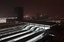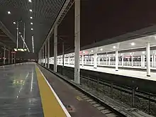 The Non-stop express Z1 and 2 between Beijing and Shanghai added Wuxi Railway Station as the only intermediate stop on July 1, 2005.[13] The electrification construction of the station yard started in 2006, the existing flyover was reconstructed to allow enough space for installing overhead line below.[14] Two platforms were uplifted to "high" at the beginning of 2007.[15] On April 18, after the Sixth Speed Up Campaign, the station began the operation of D-series train on Beijing–Shanghai railway, and had 2 D-trains to Shanghai.[16] On October 21, 2008, Wuxi station is the only intermediate stop for the first EMU Sleeper train D301/2 of China Railway.[17]