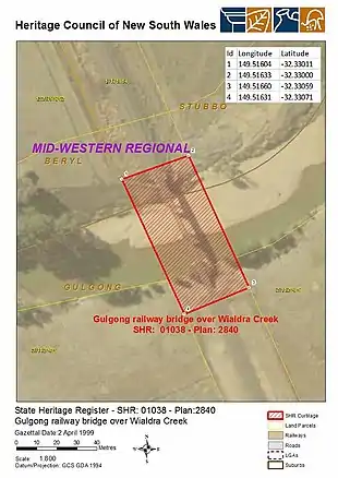 | Official name | Gulgong railway bridge over Wialdra Creek |