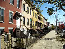 The first buildings constructed in the neighborhood were largely attached wood frame three- and six-family row houses.