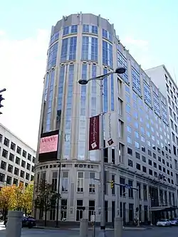 The site of the hotel was occupied by the Euclid Point Building (also known more simply as the "Point Building"), which began construction in 1907 at the intersection of Huron Road and Euclid Avenue (1260 Euclid Avenue).[1] The large property between the Euclid Point Building and the future site of the Halle Building was leased in 1909, and became the Winous Building.[2][lower-alpha 1]