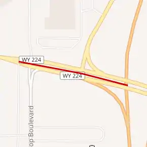 | 0.12 | 0.19 | WYDOT Headquarters | Western Terminus of WYO 224 | ||
