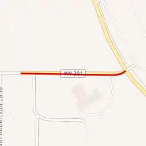 Wyoming Highway 391 travels from US 26/US 89/US 189/US 191 west to the Jackson Area WYDOT Maintenance Shop where it ends.[2] The roadway continues past the maintenance shop as Evans Road.[3]