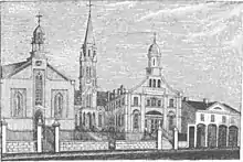 Xavier University is the fourth oldest Jesuit University and the sixth oldest Catholic university in the United States.[11] The school was founded in 1831[12] as a men's college in downtown Cincinnati next to St. Francis Xavier Church on Sycamore Street. The Athenaeum, as it was then called, was dedicated to the patronage of Saint Francis Xavier by Bishop Edward Fenwick on October 17, 1831.[13] Upon Bishop John Baptist Purcell's request, the Society of Jesus took control of The Athenaeum in 1840, and the name was changed to St. Xavier College in honor of the 16th century Spanish Jesuit missionary, St. Francis Xavier who, like the founder of the Jesuits, Ignatius Loyola, was a Spanish Basque.