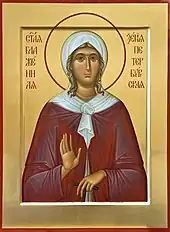 Xenia Grigoryevna Petrova (Russian: Ксения Григорьевна Петрова), also known as Saint Blessed Xenia of St. Petersburg (Russian: Святая блаженная Ксения Петербургская, c. 1719–1730 – c. 1803) is a patron saint of St. Petersburg, who according to tradition, gave all her possessions to the poor after her husband died.