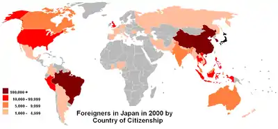 Citizenship of foreigners in Japan in 2000.