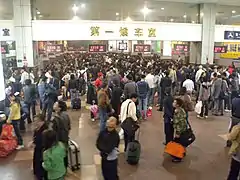 Xi'an railway station (Chinese: 西安站; pinyin: Xī'ān Zhàn) is one of the two main passenger railway stations of Xi'an, the capital of China's Shaanxi Province. Located on the Longhai Railway and just to the north of Xi'an's historical walled city, the station had long been the main train station for the Xi'an metropolitan area. With the opening of Xi'an North railway station on the northern outskirts of the city in 2011, most of the high-speed services, including the G- and D-series trains of the Zhengzhou–Xi'an high-speed railway, have been transferred to the new station.[3] Xi'an railway station remains the main station for all conventional rail service in the city, including the overnight Z-series expresses, T-series express trains, and all slower services.[4]