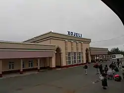 Xojeli, also Khodzheyli (Karakalpak: Xojeli/Хожели,[xoˈʒeli]; Russian: Ходжейли, romanized: Khodzheyli), is a city and seat of Xojeli District in Karakalpakstan in Uzbekistan.[1] It lies 15 km southwest of Nukus, and 25 km northeast of Konye-Urgench (Turkmenistan). Its population is 67,800 (2016).[2] Xoʻjayli has a railway station on the line from Atyrau (western Kazakhstan) to Tashkent.[3]