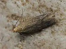 The wingspan is 10–11 mm.[3] Adults have brown forewings, with a buff tinge towards the apex. They are on wing from May to June.