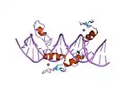 YY1 is a ubiquitously distributed transcription factor belonging to the GLI-Kruppel class of zinc finger proteins. The protein is involved in repressing and activating a diverse number of promoters. Hence, the YY in the name stands for "yin-yang." YY1 may direct histone deacetylases and histone acetyltransferases to a promoter in order to activate or repress the promoter, thus implicating histone modification in the function of YY1.[8] YY1 promotes enhancer-promoter chromatin loops by forming dimers and promoting DNA interactions. Its dysregulation disrupts enhancer-promoter loops and gene expression.[9][10]