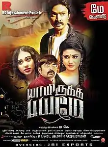 Yaamirukka Bayamey (English: Why Fear When I'm Here?) is a 2014 Indian Tamil horror comedy film written and directed by debutant Deekay and produced by Elred Kumar.[2][3] The cast includes Kreshna, Oviya, Rupa Manjari, Karunakaran, and Anaswara Kumar.[4] 15 technicians were introduced in the film,[5] which started shooting in Nainital in October.[6] Previously titled as Illa Aanalum Irukku,[2] the film released on 9 May 2014 [7] and received positive reviews.[8] The film was later remade into Kannada as Namo Boothatma and in Telugu as Next Nuvve. Yaamirukka Bayamey is based on the 1998 Korean film The Quiet Family.[9][10][11][12]