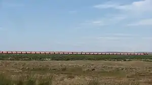The coal is then transported via rail to Punta Loyola, a 285 kilometres (177 mi) long route that takes 8 hours, and then sent via ship to Buenos Aires.[21] Some of the coal is also used in the Santa Cruz province for heating.